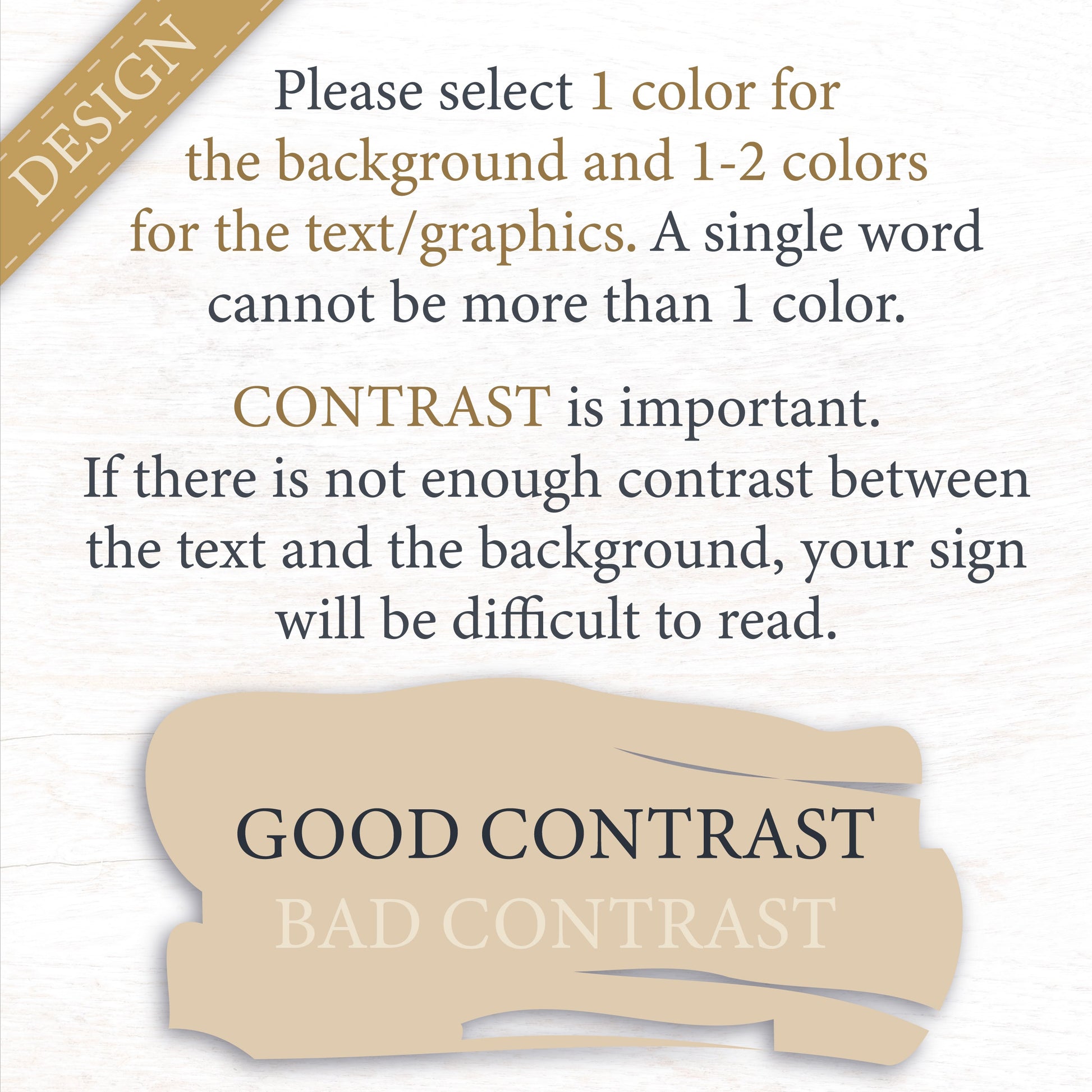 This sign is made to order and can be done in any custom color combination that you like at no additional cost. If you would like to make changes to the design, (such as adding additional text) or alter the size, please contact me for a custom order.
